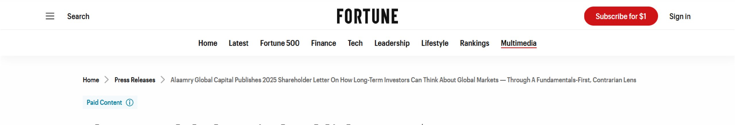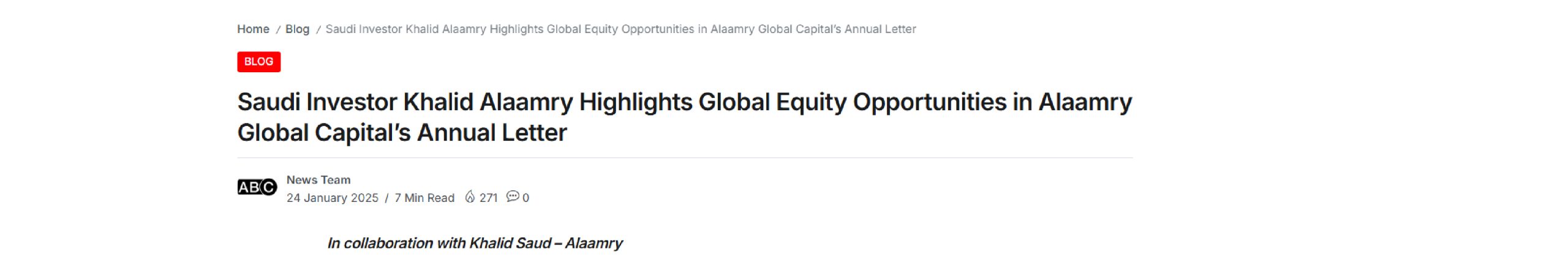 Clear, consistent communication is central to long term investment partnerships. Through annual letters, essays, and media commentary, we share our framework, how we interpret markets, and how we think about risk, valuation, and long term compounding.